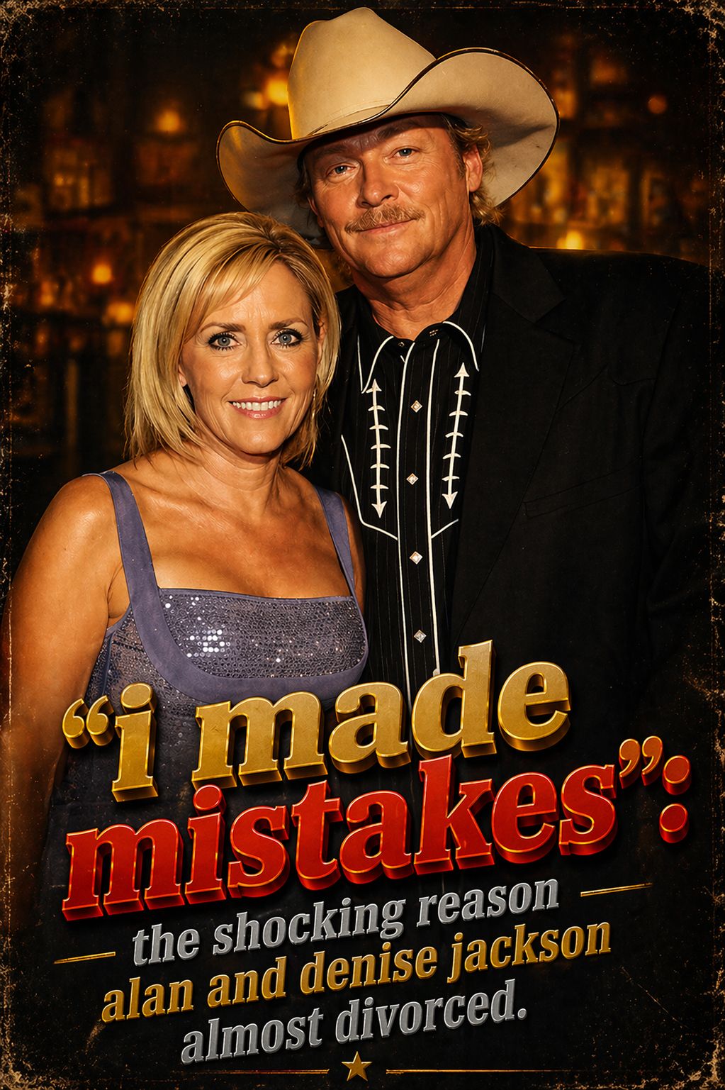 There are moments in country music when the most powerful stories are not found in lyrics, but in the lives behind them. The phrase “I MADE MISTAKES”: THE SHOCKING REASON ALAN AND DENISE JACKSON ALMOST DIVORCED points to one of those moments—a deeply personal chapter in the life of Alan Jackson that quietly shaped not only his relationship, but also the emotional depth of his music. It is not a story about spectacle or scandal, but about honesty, reflection, and the difficult process of rebuilding trust.